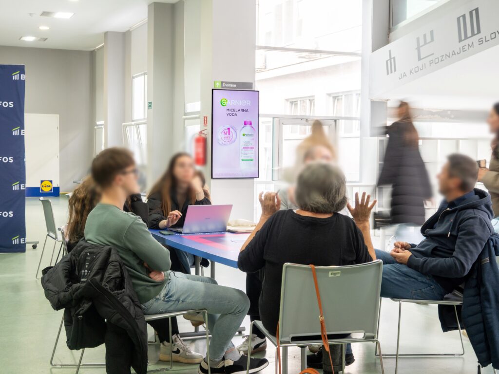 Naš sustav obuhvaća više od 130 digitalnih ekrana postavljenih na najfrekventnijim studentskim lokacijama u Hrvatskoj – od fakulteta, kantina, menzi i studentskih centara. Svakodnevno dosežemo oko 200.000 studenata, a nakon svake kampanje klijentima dostavljamo detaljnu postbuy analizu kroz Arabox audience measurement platformu.